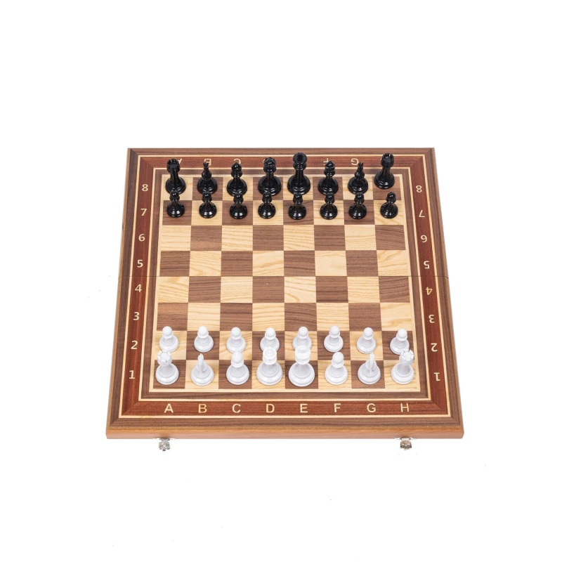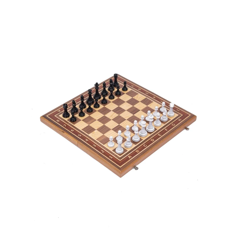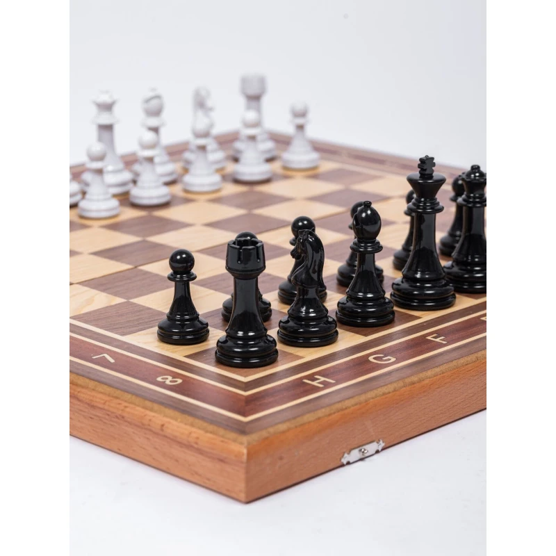 Турнирные большие шахматы с черно белыми фигурами в классическом стиле Стаунтон. Размер доски в разложенном виде 50 на 50 см. Шахматные фигуры с утяжелением. Шахматное поле собирается вручную в технике маркетри из различным пород дерева. Подойдут в подарок для детей и взрослых.