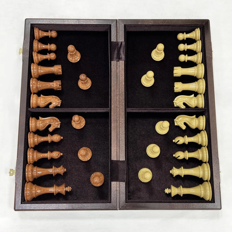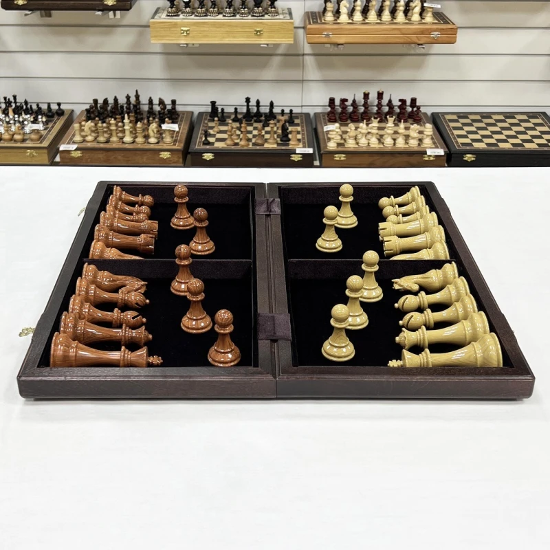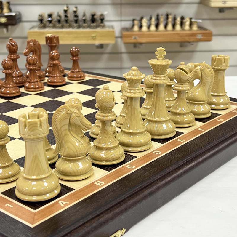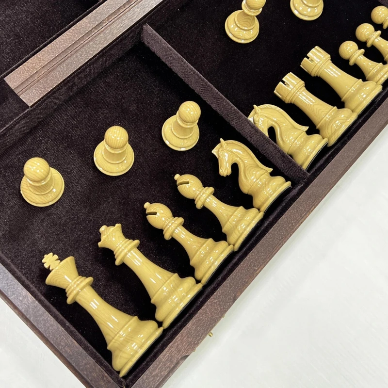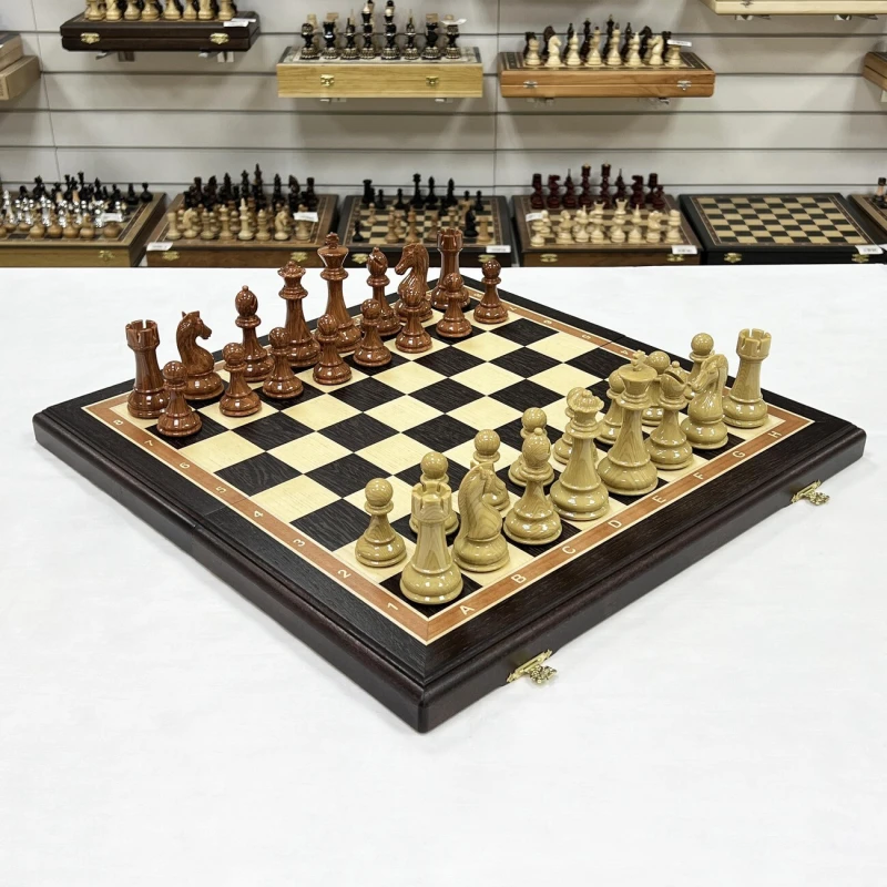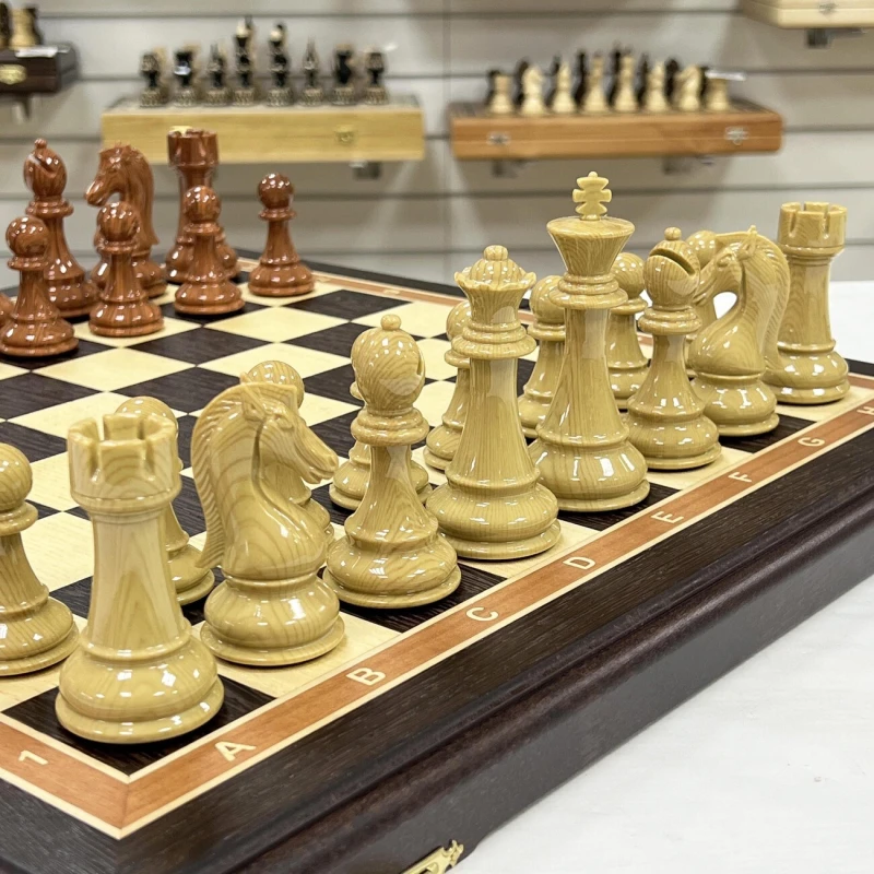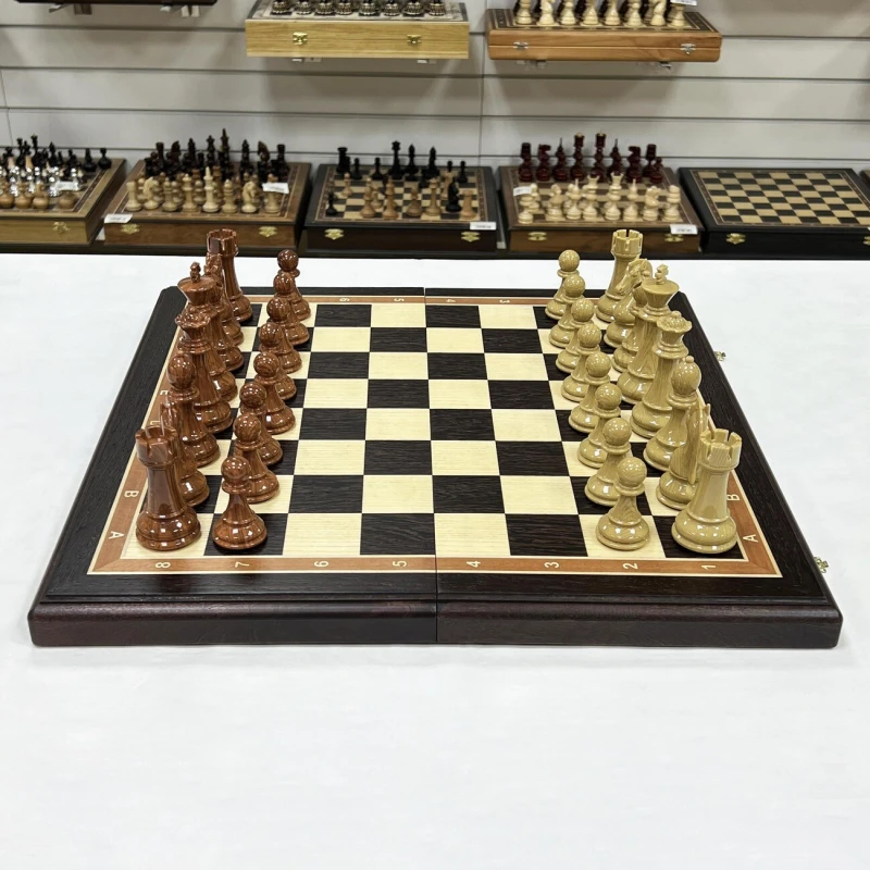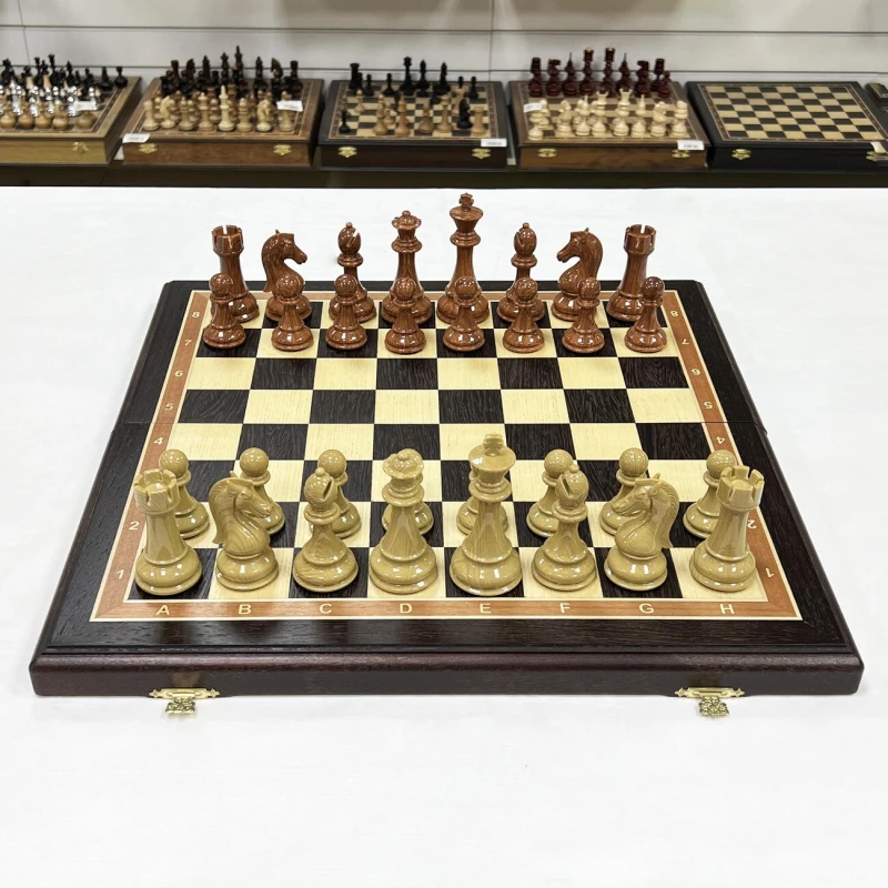 -Доска изготовлена из качественного венге, придающего ей роскошный и стильный вид. Эта превосходная доска станет идеальным фоном для вашей игры, создавая атмосферу роскоши и утонченности.