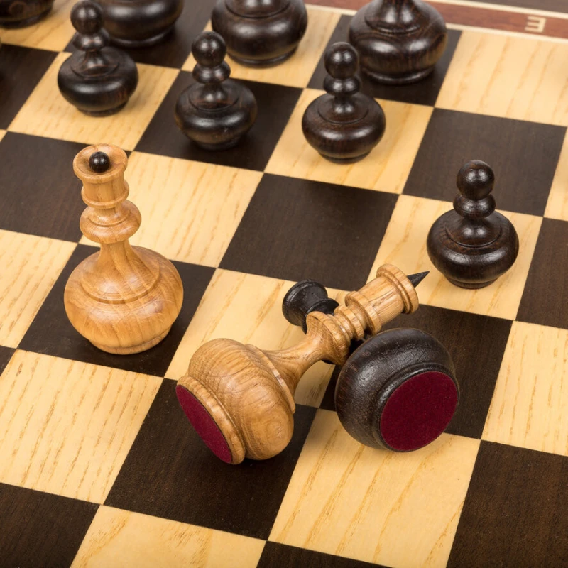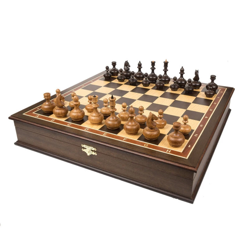 Шахматная доска – основа для игры в шахматы. Каркас данной модели доски выполнен из бука, а ее игровое поле покрыто шпоном различных ценных пород дерева, (дуб, светлый ясень, и прочее). Никакой цветной печати - каждый элемент доски, будь то клетка, цифры или буквы, а также поля доски выполнены из дерева.