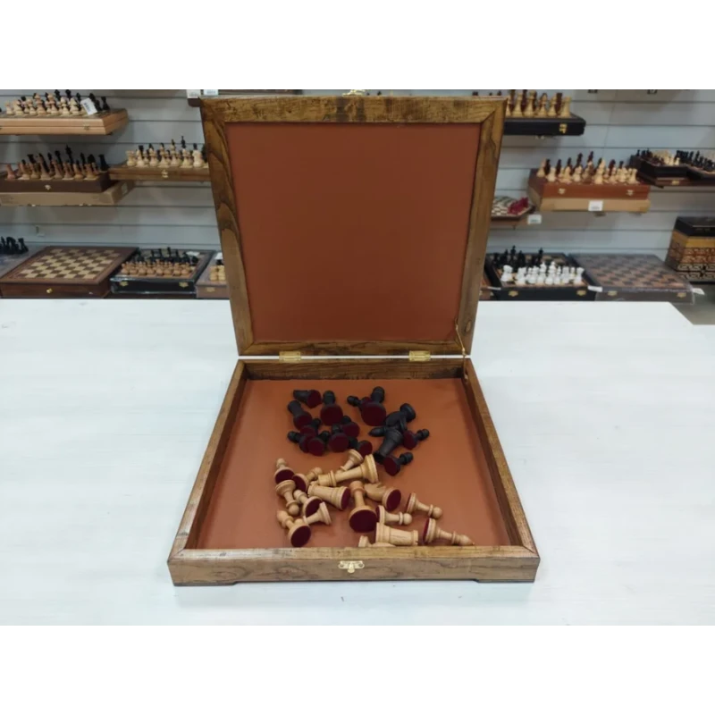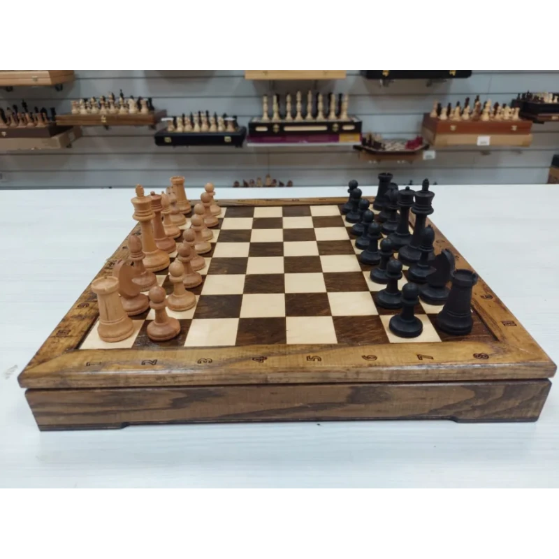 Шахматы в ларце выполнены из дерева, что придает им особый шарм и неповторимость. Каждая фигура создана мастерами с большим вниманием к деталям, поэтому они обладают не только функциональностью, но и художественной ценностью.