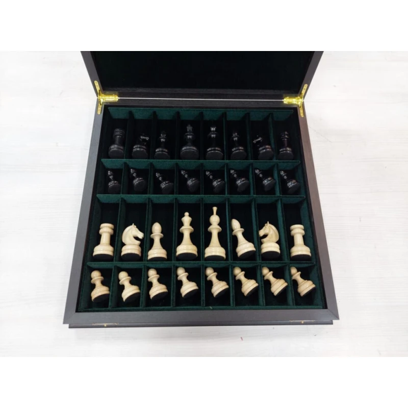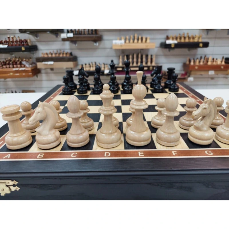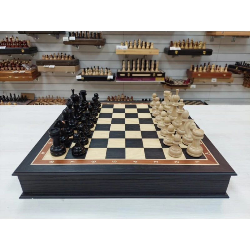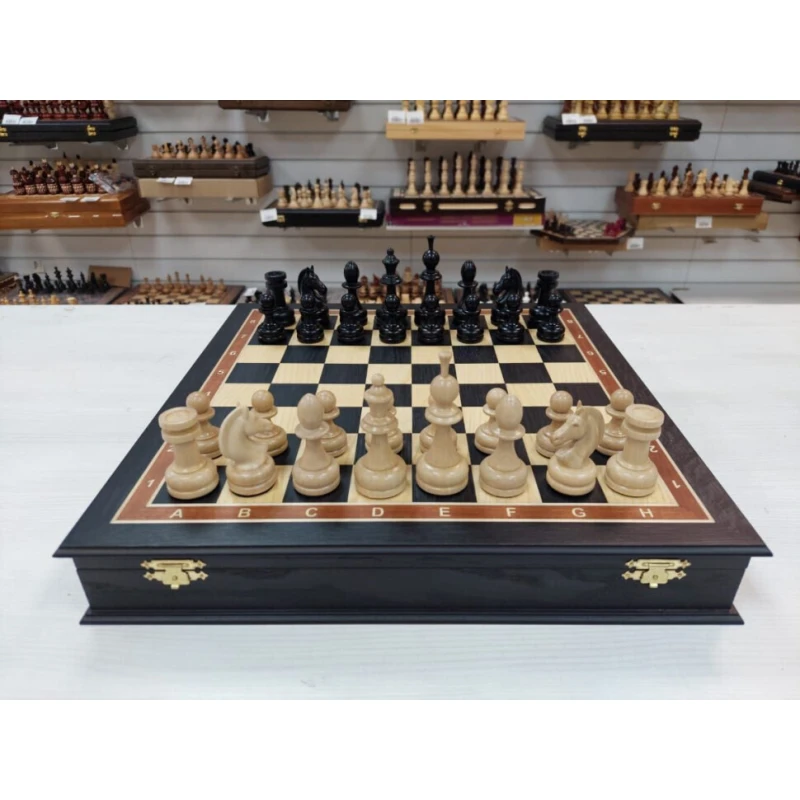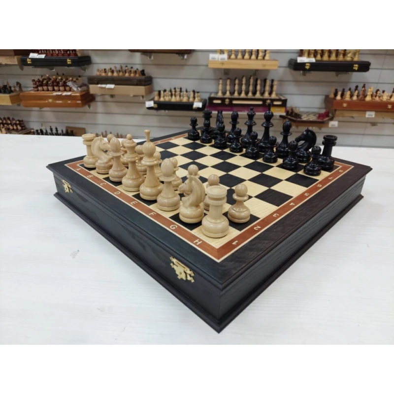 Шахматы в ларце из мореного дуба 45 на 45 см с фигурами из бука с утяжелением