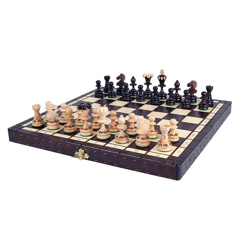 Для создания шахмат используется бук и граб. Эти материалы подходят для любой погоды, в не зависимости от температуры и влажности. Вы всегда сможете насладиться любимой игрой в приятной компании. Фигуры выполняются в оригинальном стиле, с ручной резьбой по дереву. Они имеют утонченный вид и отлично смотрятся на доске. Доска также отличается от дешевых образцов, на ней находится хорошо читаемая разметка, а также резные каналы вдоль всего полотна.