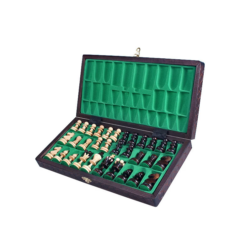 С внутренней стороны доски имеются ячейки для каждой отдельной фигуры, поэтому во время переноса они не будут шуметь, биться и портить свое покрытие.