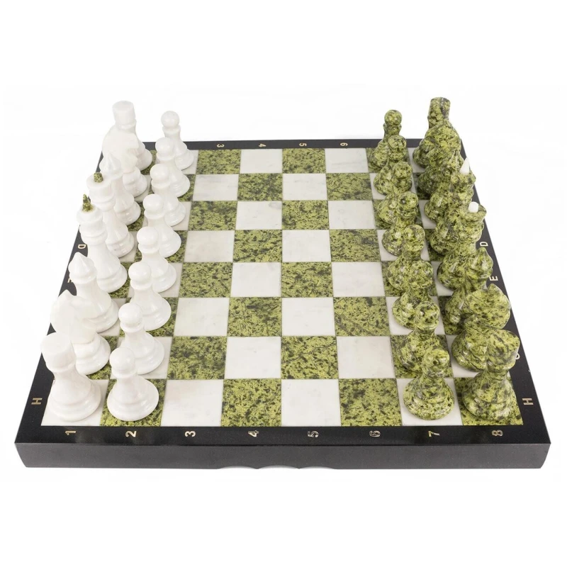 Размер доски 49 на 49 см. Материал доски змеевик и мрамор. Размер клетки 5.5 см