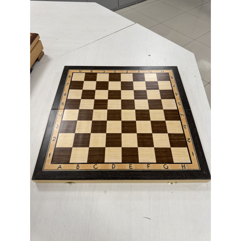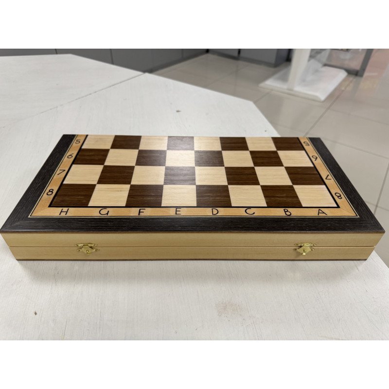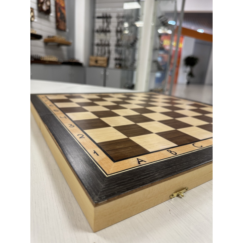 Складная шахматная доска из дерева с размерами 47х47см в разложенном виде размер клетки 4.7х4.7см. Корпус доски выполнен из хвойных пород дерева. Внутри покрыта тканью