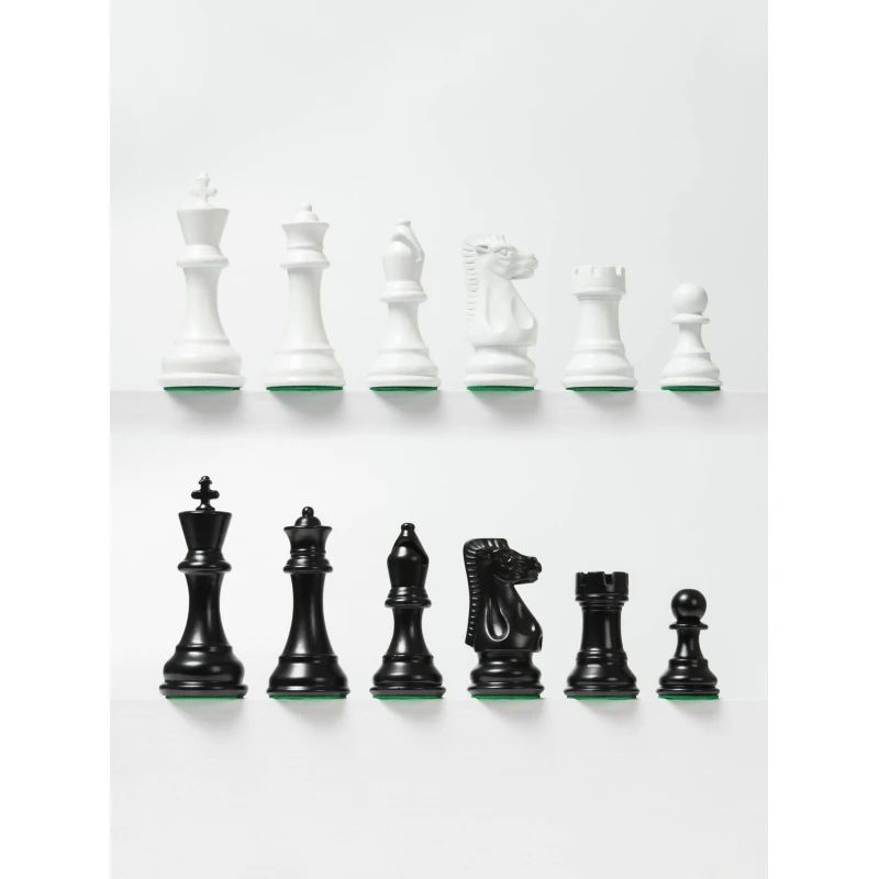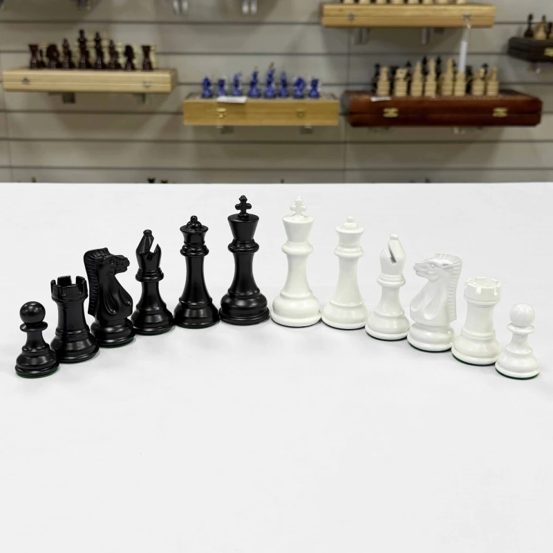 Чёрно-белое исполнение с глубоким насыщенным цветом фигур. Подходят к любым шахматным доскам с клеткой 4 см, 4,5 см, 5 см, 5,5 см.