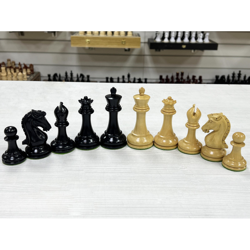 Шахматные фигуры сделаны вручную индийскими мастерами. Особое внимание стоит обратить на очень красивых шахматных коней. Фигуры выполнены в стиле Стаунтон, самый популярный дизайн шахмат в мире. В основании фигуры утяжелены и подклеены защитной тканью, что бы не царапать доску. Высота короля 9.8 см, высота пешки 5.2 см. Подойдут для досок с клеткой от 4.5 см.