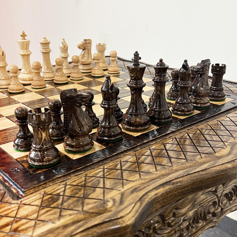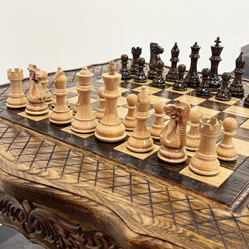 Купить шахматный стол, турнирные шахматные столы, подарочные шахматы ручной работы можно в нашем магазине в Москве и в Санкт Петербурге. Получить дополнительную информацию и помощь в выборе шахмат можно по телефону у наших специалистов +7 (495) 662-99-14