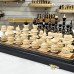 Большие шахматы ручной работы. Размер доски в разложенном виде 50 на 50 см. Шахматное поле собирается в технике маркетри из ценных пород дерева, темная клетка моренный дуб, светлая клетка ясень. Размер клетки 5 на 5 см. Шахматные фигуры сделаны из липы классической формы, но с большим количеством резных элементов. Высота короля 12.6 см, фигуры без утяжеления, но при этом достаточно устойчивые на доске. Сделаны в России.