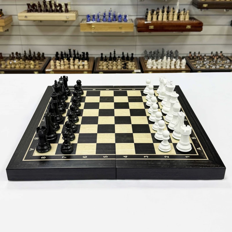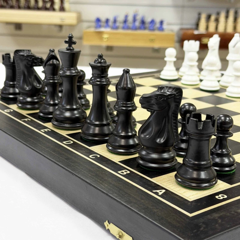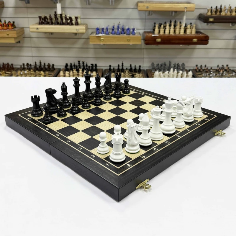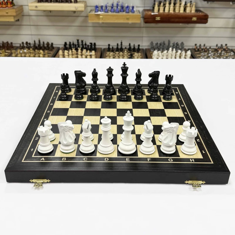 Шахматы деревянные черно-белые эвкалипт с фигурами Суприм из бука