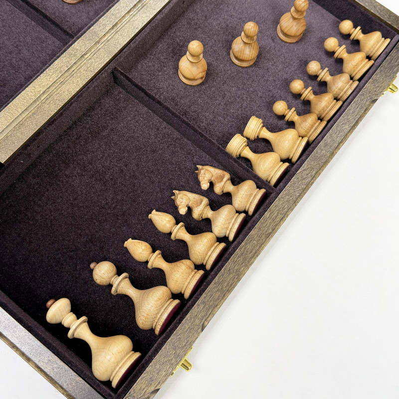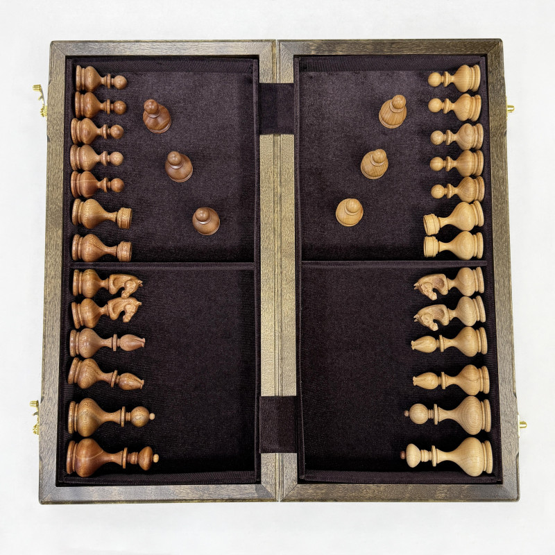 - Материал фигур:светлые фигуры - бук темные фигуры - красное дерево