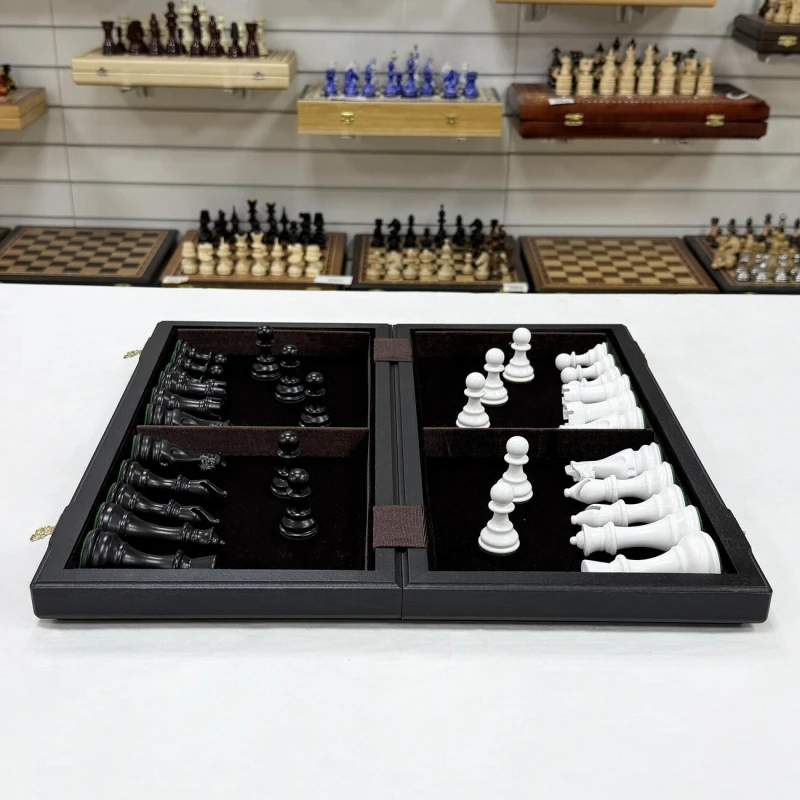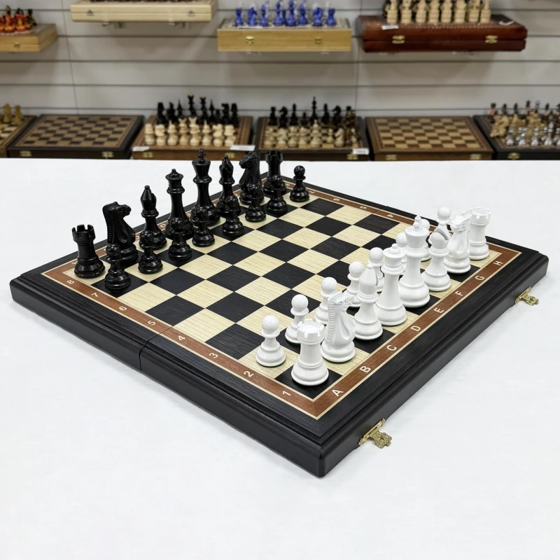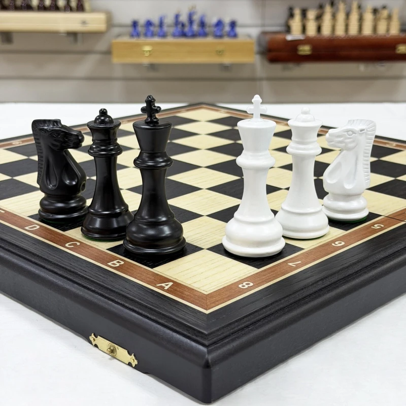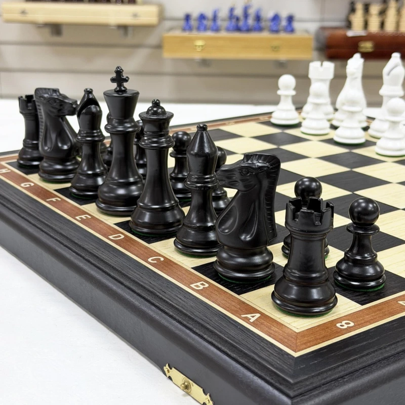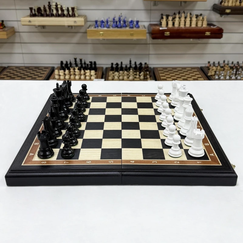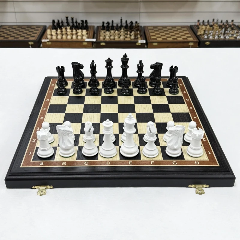 Шахматы деревянные мореный дуб Суприм черно-белые средние