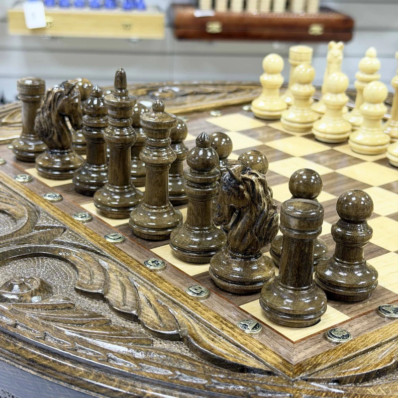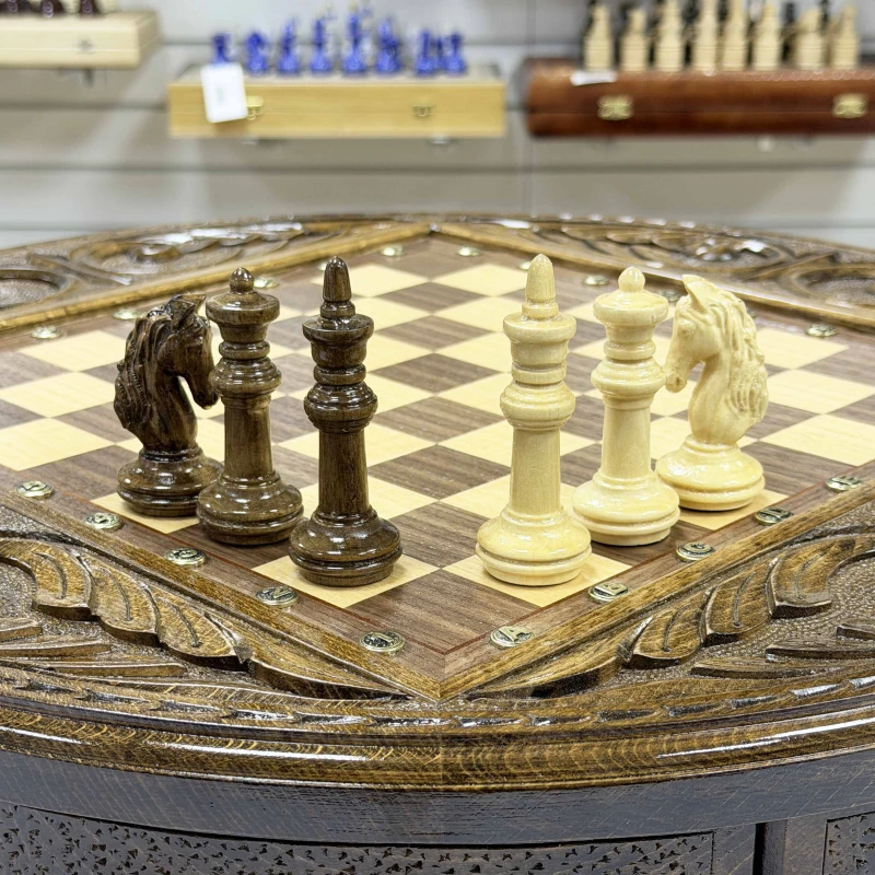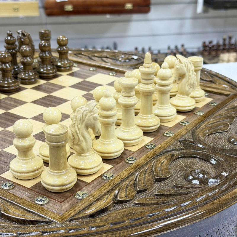 Шахматный стол резной из массива ясеня Премиальный люкс