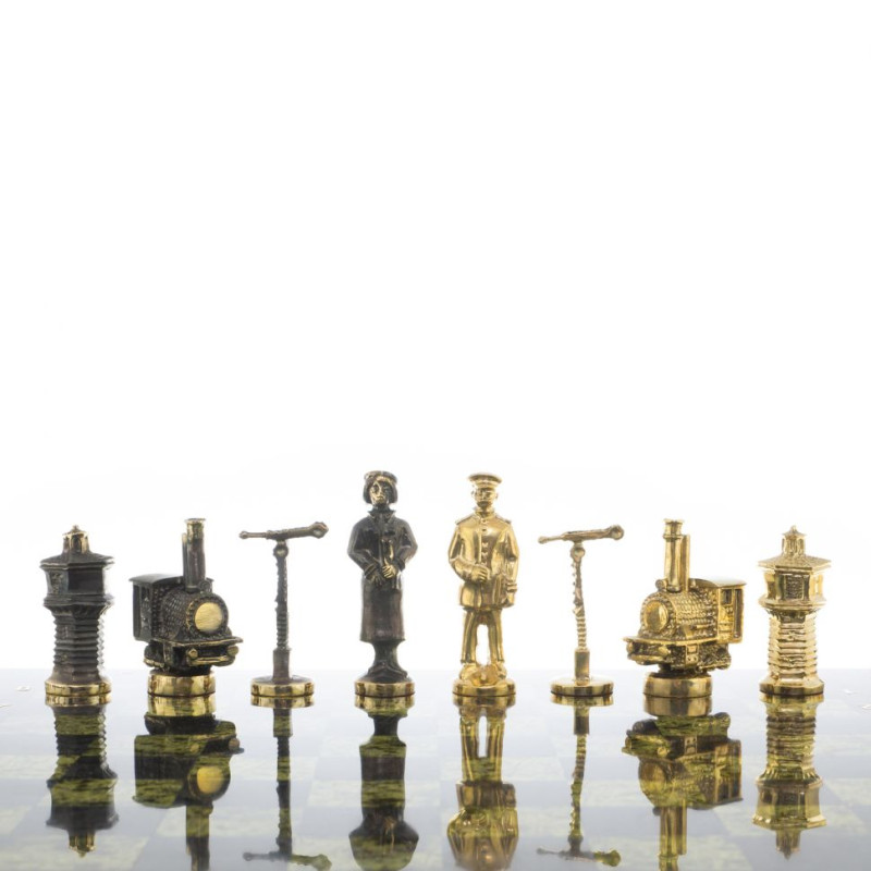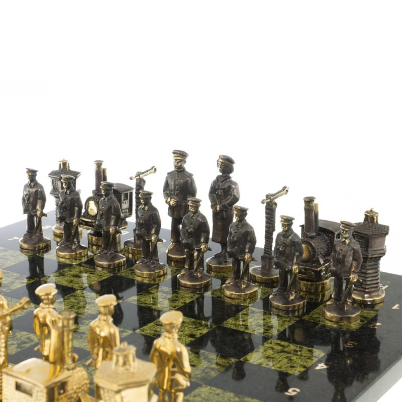 Настольные шахматы из камня с оригинальными фигурами станут прекрасным подарком мужчине, сотруднику РЖД на день рождения или день железнодорожника. В комплекте футляр из экокожи.