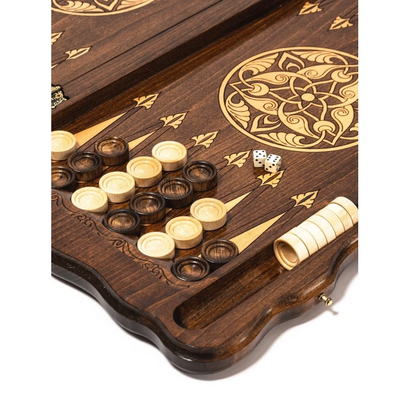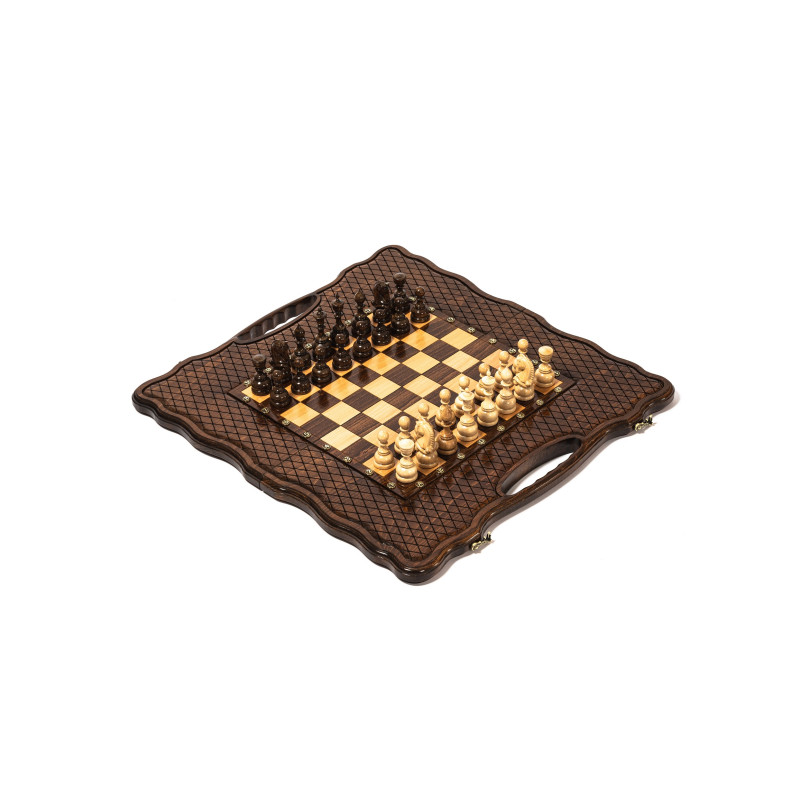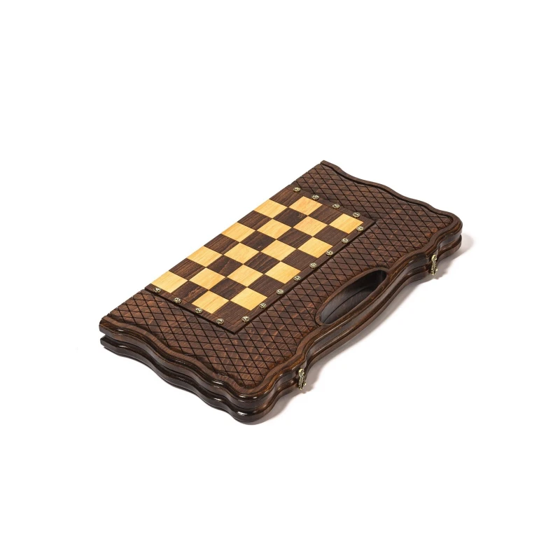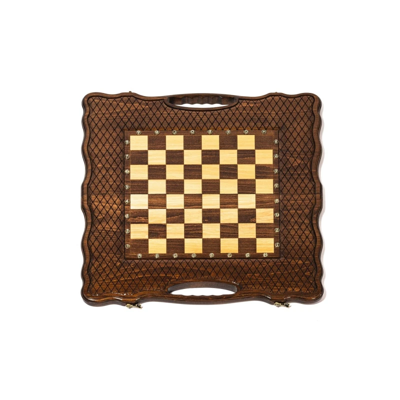 Игровой набор 3 в 1: шахматы, шашки, нарды! Эта уникальная деревянная доска из массива липы размером 60 на 60 см в разложенном виде станет не только полем для интеллектуальных сражений, но и памятным сувениром. На поверхности доски- резной рисунок ручной работы, изображающий красивый орнамент. Внутри доски поле для игры в нарды. В комплекте идут деревянные шахматные фигуры (король высотой 8 см, пешка – 5 см) и деревянные фишки, которые можно использовать как для игры в нарды, так и для шашек. Этот набор станет отличным подарком для любителей настольных игр.