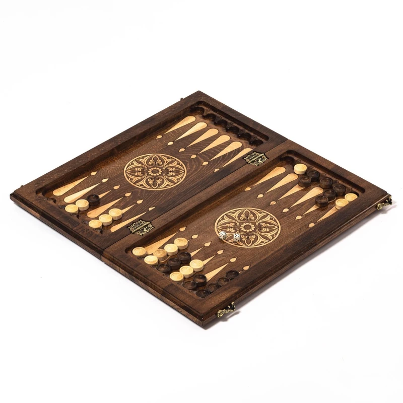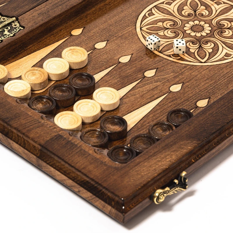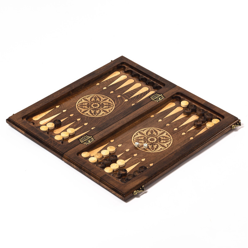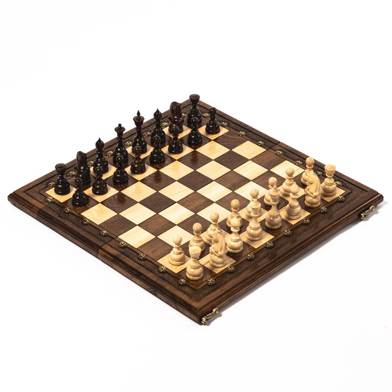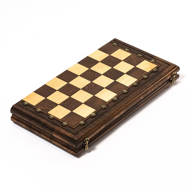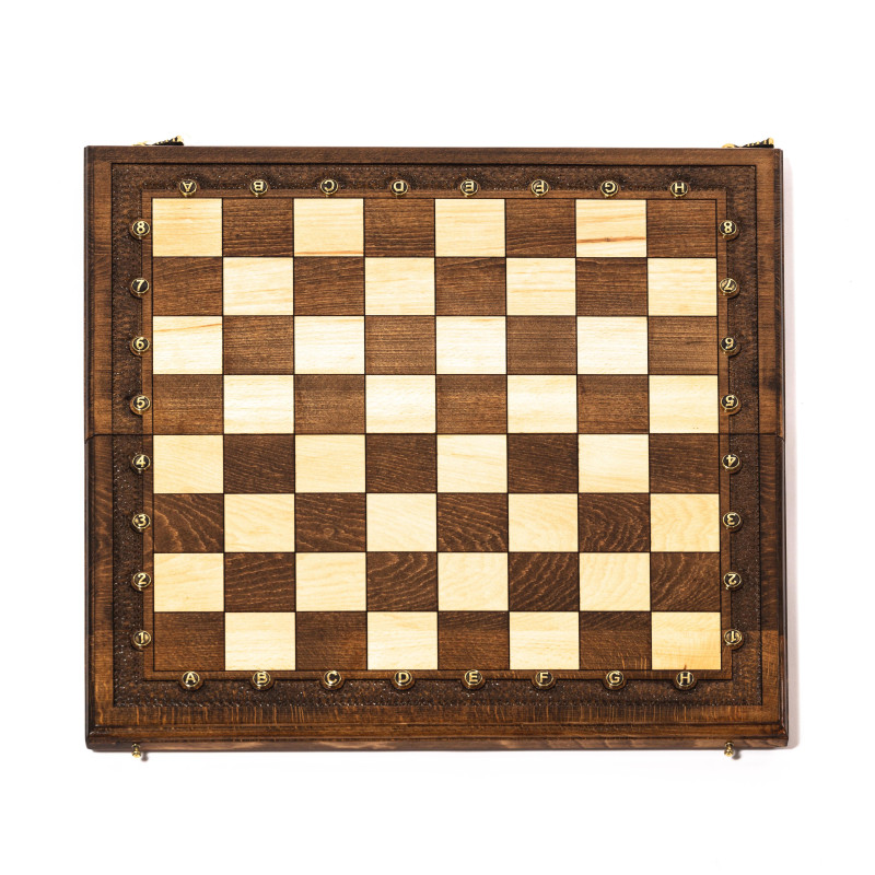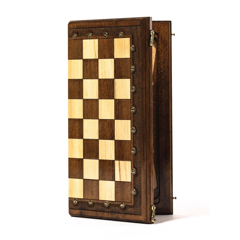 Игровой набор 3 в 1: шахматы, шашки, нарды ручной работы! Эта уникальная резная деревянная доска из массива бука размером 50 на 50 см в разложенном виде станет не только полем для интеллектуальных сражений, но и памятным сувениром. На поверхности доски- резной рисунок ручной работы, изображающий красивый орнамент. Внутри доски поле для игры в нарды. В комплекте идут деревянные шахматные фигуры (король высотой 10 см, пешка – 5 см) и деревянные фишки, которые можно использовать как для игры в нарды, так и для шашек. Этот набор станет отличным подарком для любителей настольных игр.