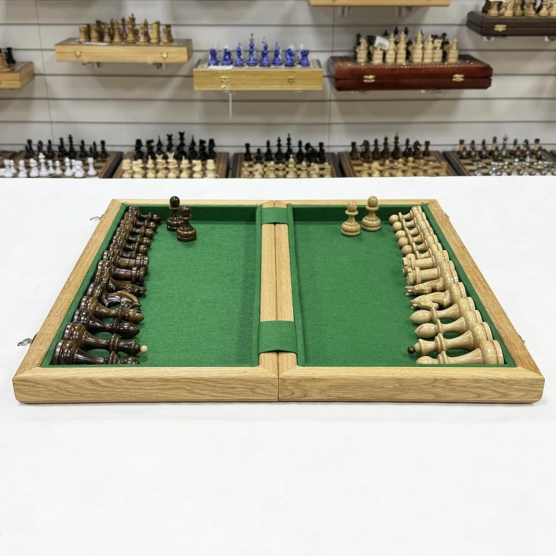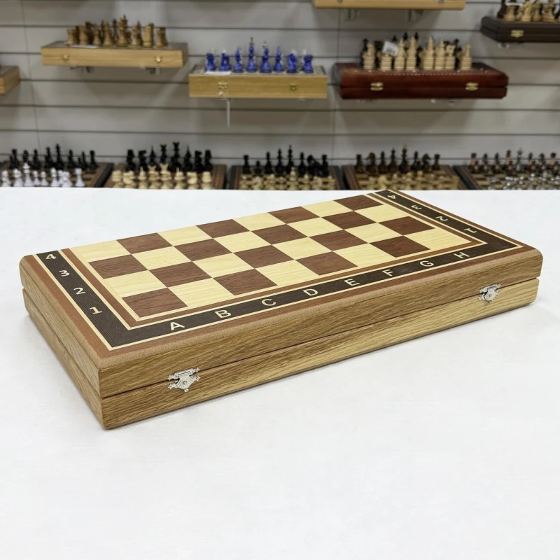 Большие эксклюзивные шахматы ручной работы. Размер доски в разложенном виде 50 на 50 см. Размер доски в сложенном виде 50 на 25 см. Высота короля 10 см, высота пешки 5 см. Размер клетки 5 на 5 см. Шахматные фигуры сделаны из ценной породы дерева - кавказский граб. Есть утяжеление и подклейка основания фигур для защиты доски. Классический дизайн шахмат. Шахматное поле собирается в технике маркетри из красного дерева и ясеня. Корпус доски сделан из массива бука. Подойдут для профессиональных игроков в шахматы и для начинающих.