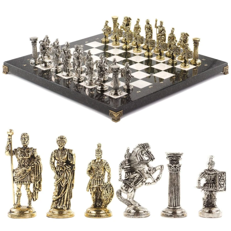 Шахматы подарочные Римские воины 44х44 см мрамор змеевик