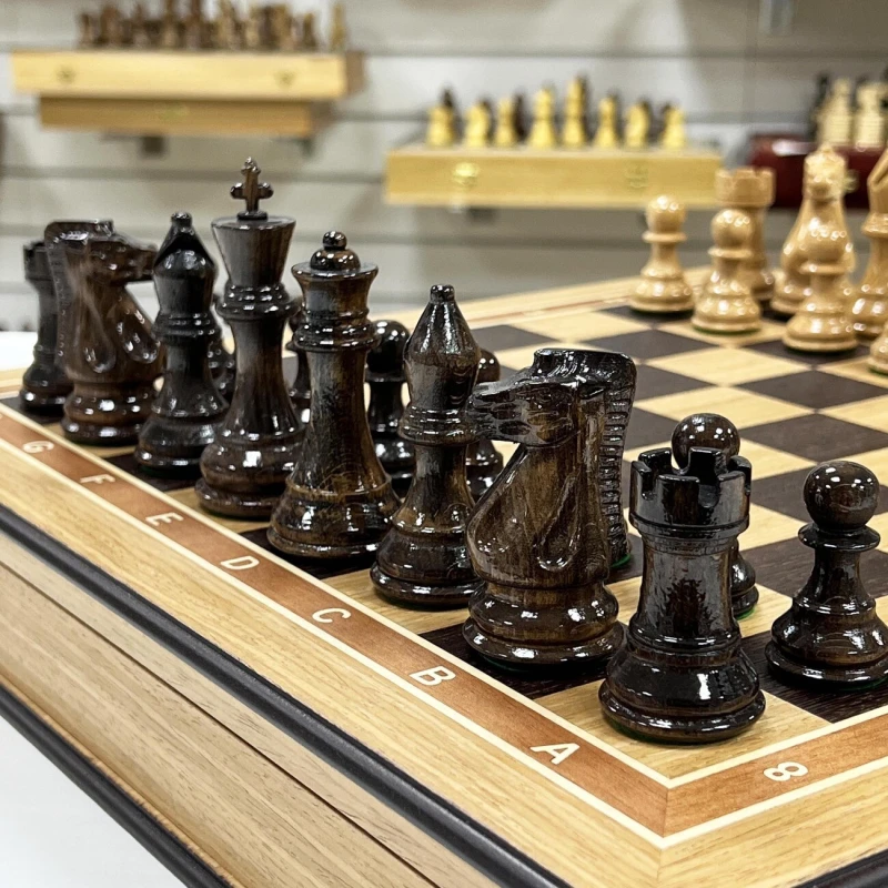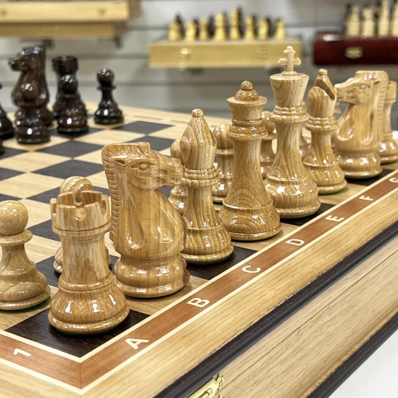 Шахматы деревянные - это элегантная и изысканная настольная игра для двоих, которая не только развивает логическое мышление, но и приносит удовольствие от тактических сражений на шахматной доске. Эти шахматы подарочные являются прекрасным выбором для любителей этой древней игры. Изготовленные из качественного дерева, шахматы обладают прочностью и долговечностью. Деревянная текстура добавляет натуральности и теплоты внешнему виду шахмат. Эта классическая настольная игра представляет собой прекрасный способ провести время в компании близких или друзей. Шахматы требуют стратегического мышления, позволяют развивать аналитические способности и улучшать концентрацию. Они стимулируют мозговую активность и помогают тренировать память. Неотъемлемая часть культуры и искусства, шахматы подарочные являются прекрасным подарком для ценителей этой игры. Они могут быть отличным презентом на праздник или юбилей, символизируя уважение к интеллектуальным способностям и стратегическому мышлению. Одной из главных особенностей этих шахмат является их большой размер, что делает игру еще более захватывающей и интересной. Большие фигуры создают эффектное зрелище на игровом поле и позволяют игрокам лучше видеть и анализировать ходы.