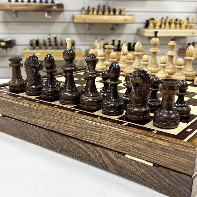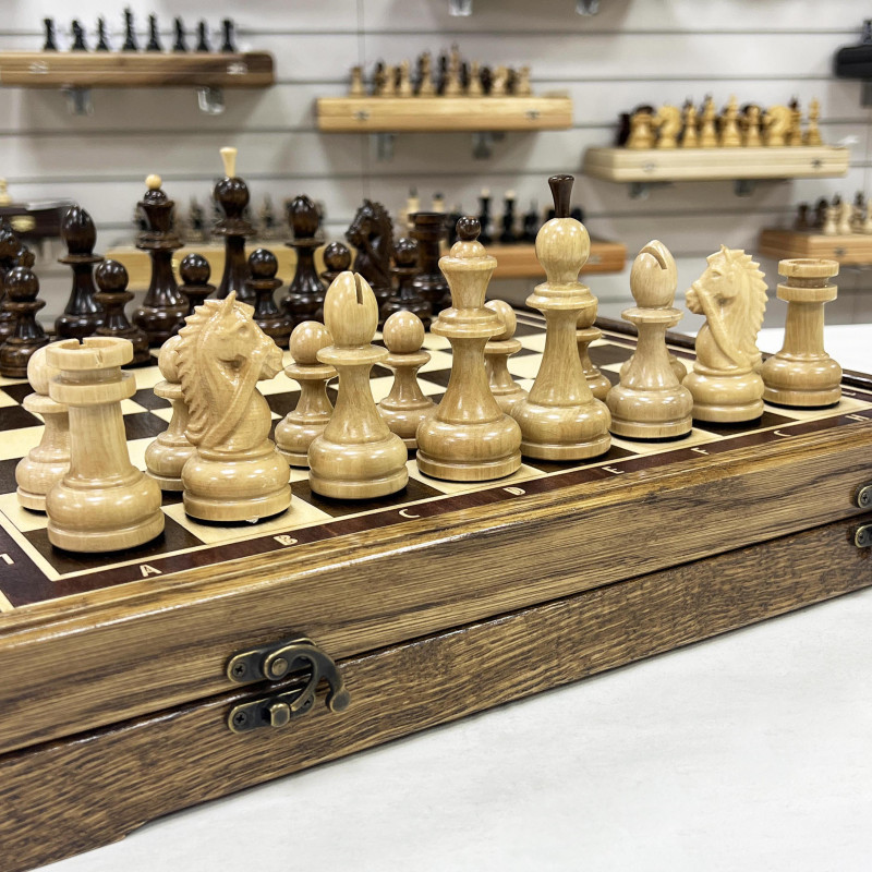 Купить деревянные шахматы, шахматы ручной работы, подарочные шахматы, шахматы из дуба, большие шахматы можно в наших магазинах в Москве и в Санкт Петербурге.