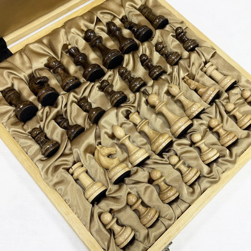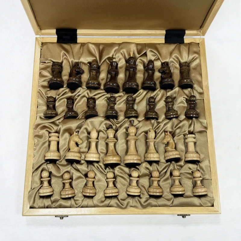 Изысканный шахматный набор ручной работы: ларец из кавказского граба с прочными и красивыми замочками, внутри - атласная обивка с ячейками для хранения фигур. Размер доски 41 х 41х 7 см, размер клетки - 4.5 см. Шахматные фигуры в классическом стиле, покрыты лаком. Тёмные фигуры из кавказского граба (тонированные), светлые - из натурального граба. Утяжелены и подклеены у основания. Король 10 см, пешка 5 см. Роскошный и функциональный подарок для истинных ценителей!