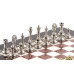 Шахматы изготовлены из природного материала лемезит и мрамор, фигуры из металла с покрытием под золото и серебро, имеют размеры доски 28х28х2,5 см и весят 6300 г.