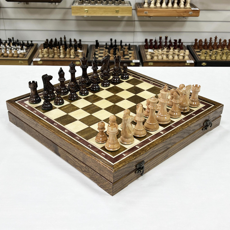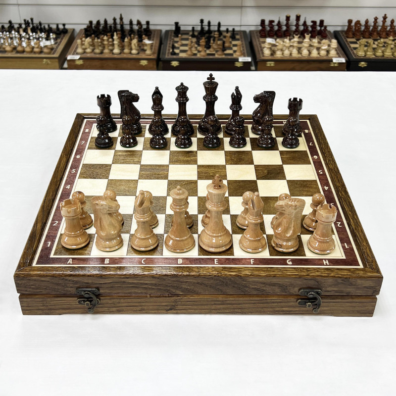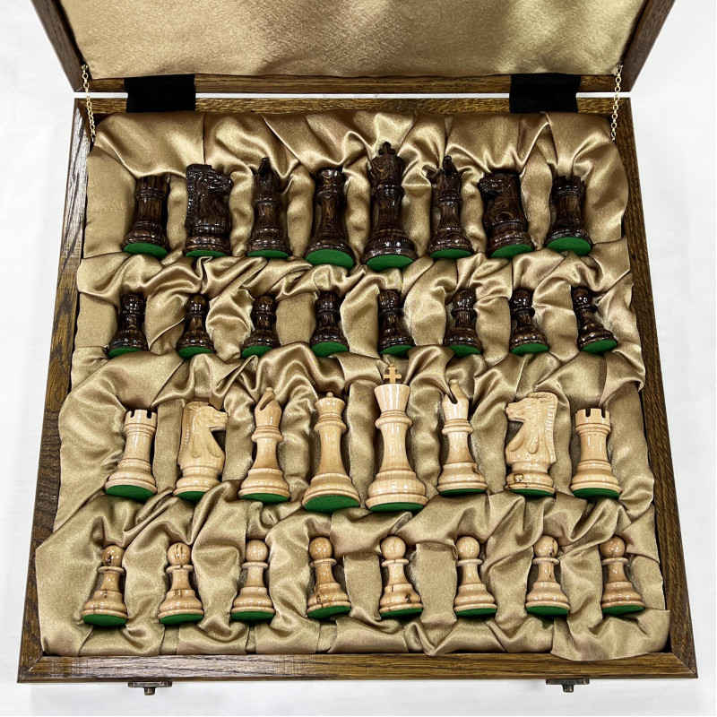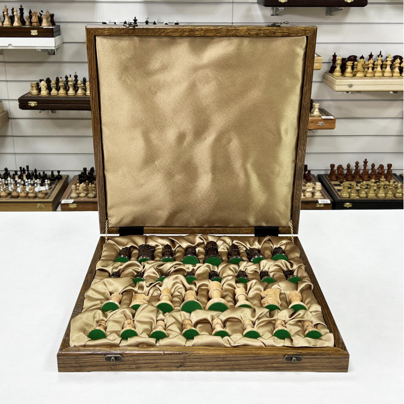 Шахматный ларец подарочный из дуба имеет размеры 40х40см, внутри расположены ячейки оббитые бархатной тканью для безопасного хранения фигур. В комплекте дубовые утяжеленные фигуры Суприм с размерами 10см - король 5- пешка, диаметр основания 3.8см/2.7см соответственно . Данный комплект станет великолепным подарком каждому любителю шахмат. Также в нашем магазине вы всегда можете приобрести каждую позицию отдельно и собрать свой неповторимый комплект!