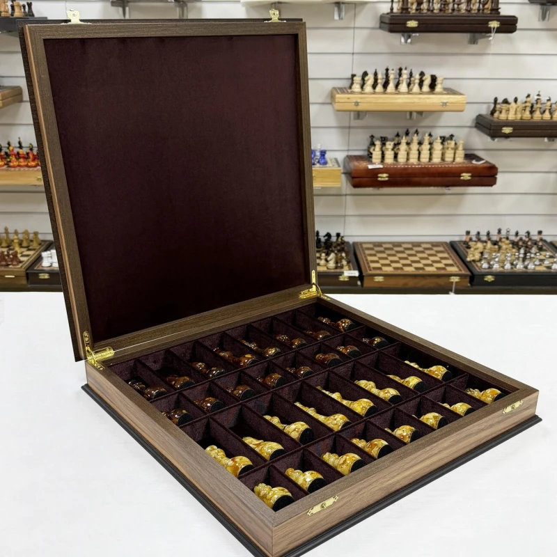Купить янтарные шахматы, шахматы в подарок, эксклюзивные шахматы, шахматы в ларце можно по телефону + 7 (495) 662-99-14. Заказать доставку можно по всей России и странам СНГ.