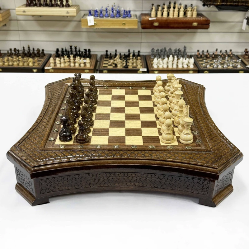 Шахматы в ларце с выдвижным ящиком из массива бука Восточные