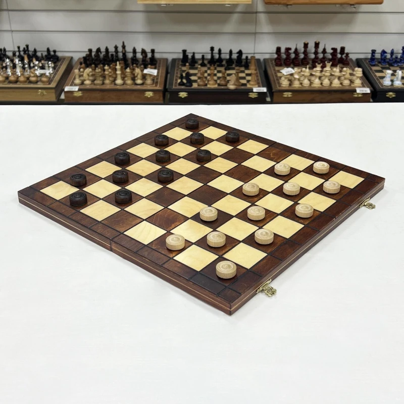Шашки из дерева - отличный подарок для детей и взрослых. Изготовленные из липы, эти шашки не только служат функциональным игровым предметом, но и являются настоящим произведением искусства. Размер доски 39 на 39 см. Размер клетки- 4.5 см. Доска складная. В комплекте набор фишек из яблони - 12 белых, 12 темных. Фишки подклеены у основания. Сделано в Польше.