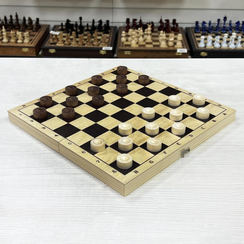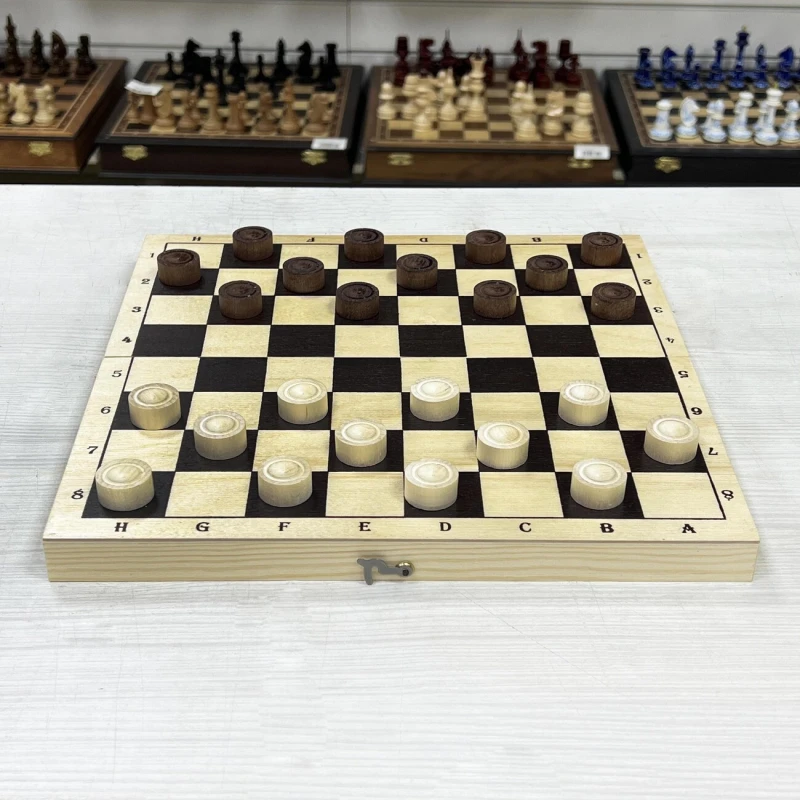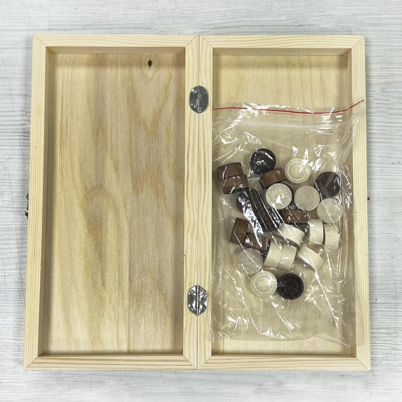 Набор имеет небольшой вес, так что его с легкостью можно взять с собой, направляясь на природу или на дачу. Игральная доска оснащена надежными защелками - предохранителями, которые помогают не растерять невзначай шашки.