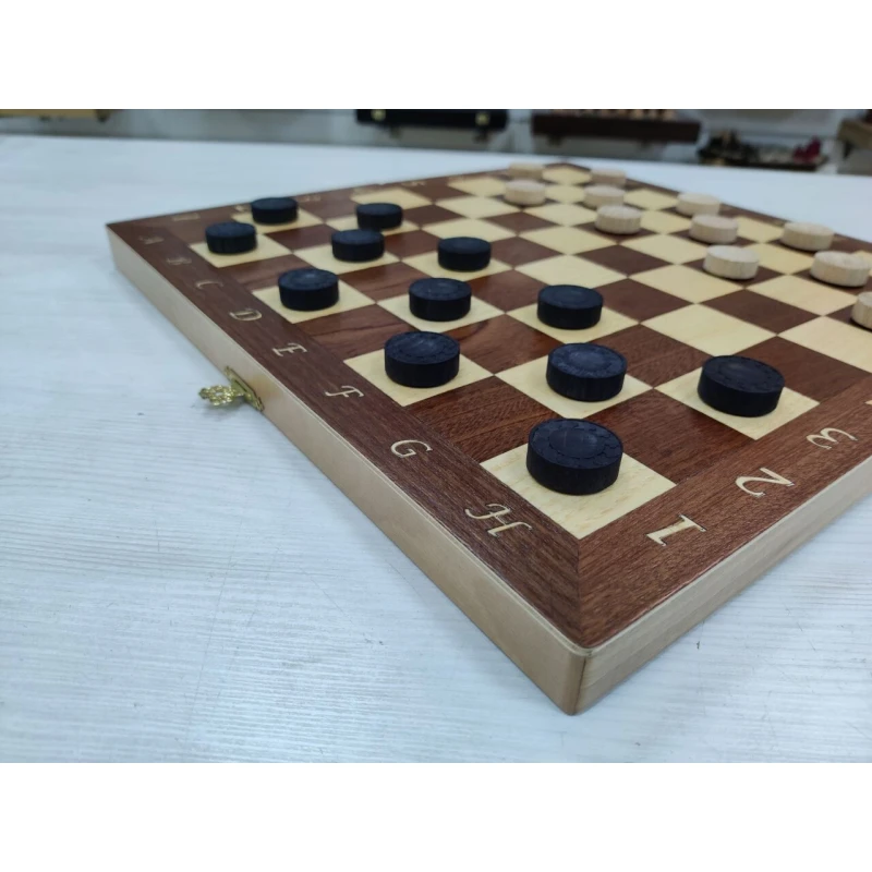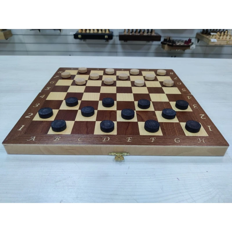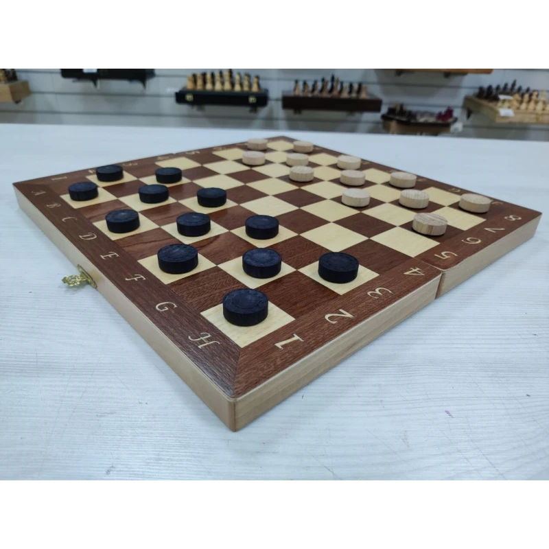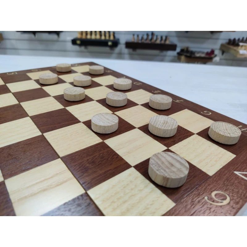 Шашки сделаны из дерева, размер доски 41.5 на 41.5 см. Материал доски для шашек красное дерево, ясень, бук. Корпус доски выполнен из массива бука. Лицевые стороны собираются вручную из разных пород дерева в технике маркетри. Материал фишек для шашек бук. Размер шашки 3 см. Размер клетки 4.5 см. Подойдут в подарок для детей и взрослых.