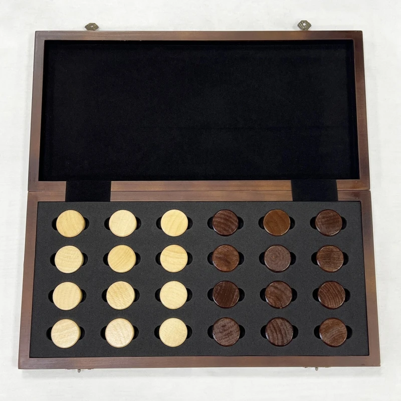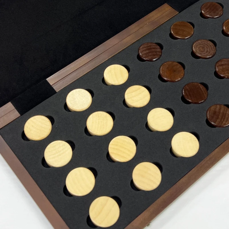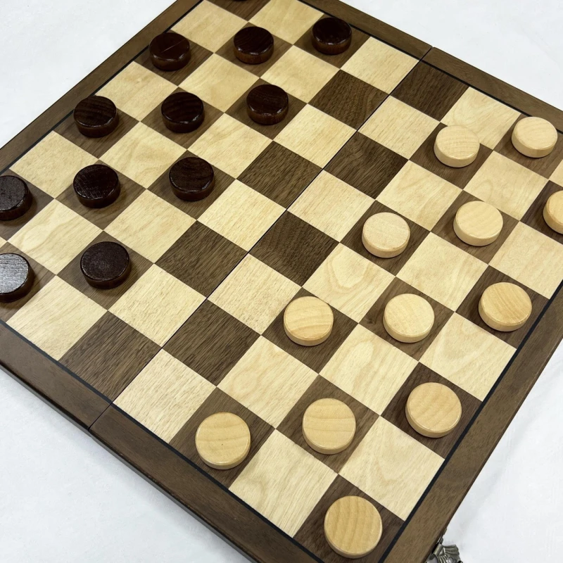 Подарочные шашки ручной работы из ореха и клена. Фишки для шашек на магнитах. Внутри доски ячейки для хранения фишек. Размер доски в разложенном виде 39 на 39 см. Подойдут в подарок для детей и взрослых.