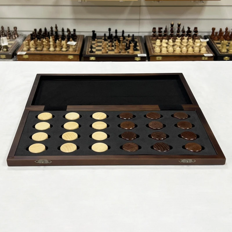 Купить деревянные шашки, подарочные шашки, шашки для детей, шашки на магнитнах можно в наших магазинах в Москве и в Санкт Петербурге.