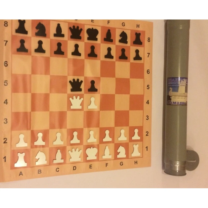 Доска размером 80 см X 80 см моментально крепиться на металлической основе и также моментально снимается и складывается в тубус. Фигуры пластиковые имеют большой магнит и крепко держаться.